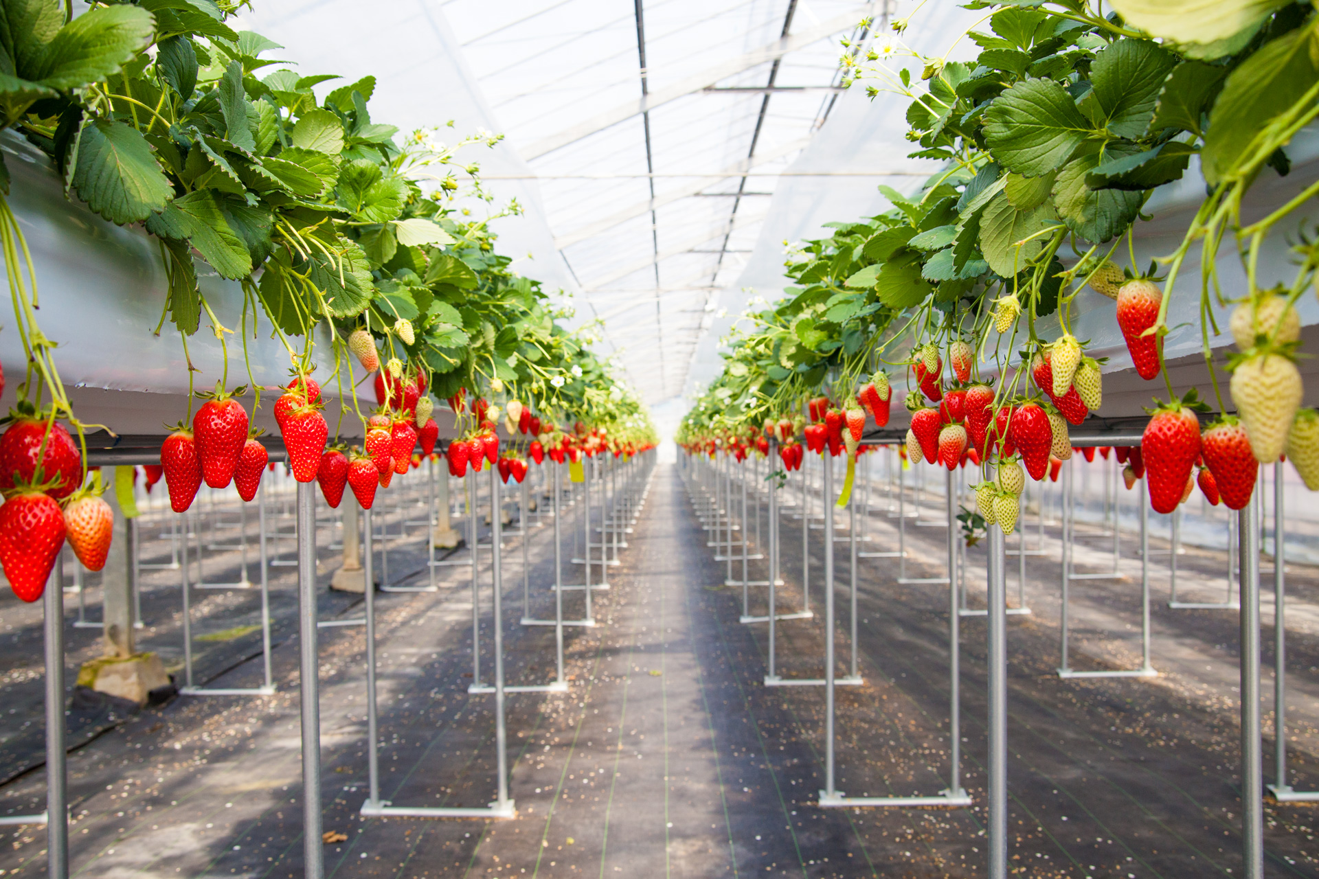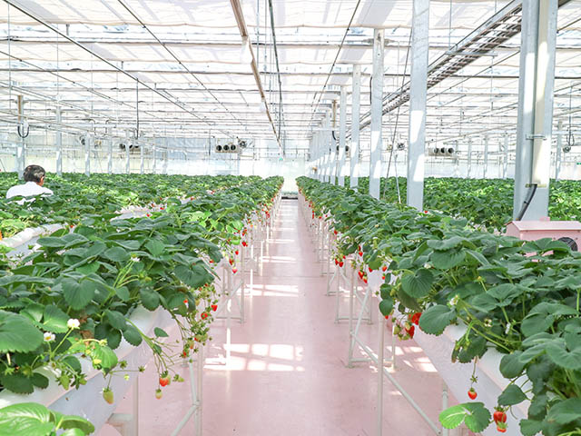 Moreover, the strawberries are not grown on the soil, it is cultivated around on the 1 m height, so that it is accesible for the people using wheelchair or aged persons.