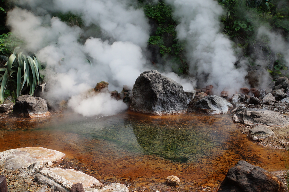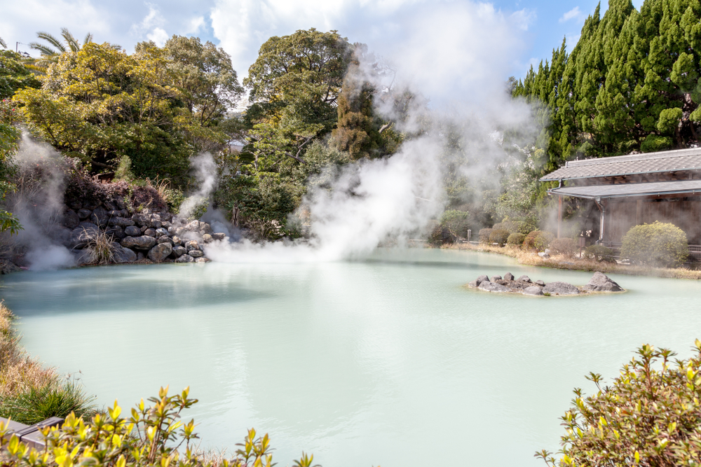 Japan is the paradise of hot springs gushing from its volcanic soil. There are some natural springs in Beppu (Kyushu Island) for over a thousand years that are far too hot to swim in, called "Jigoku (the hell)".