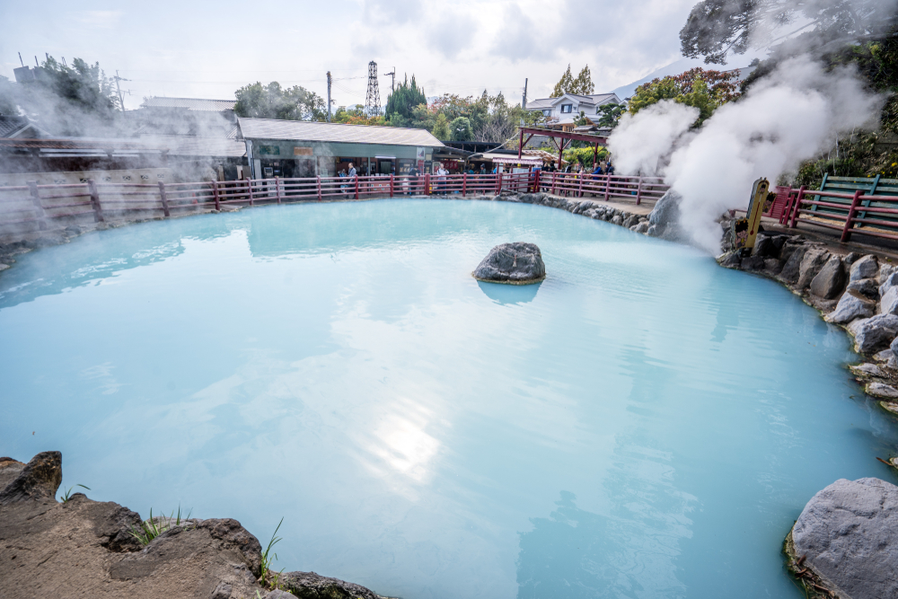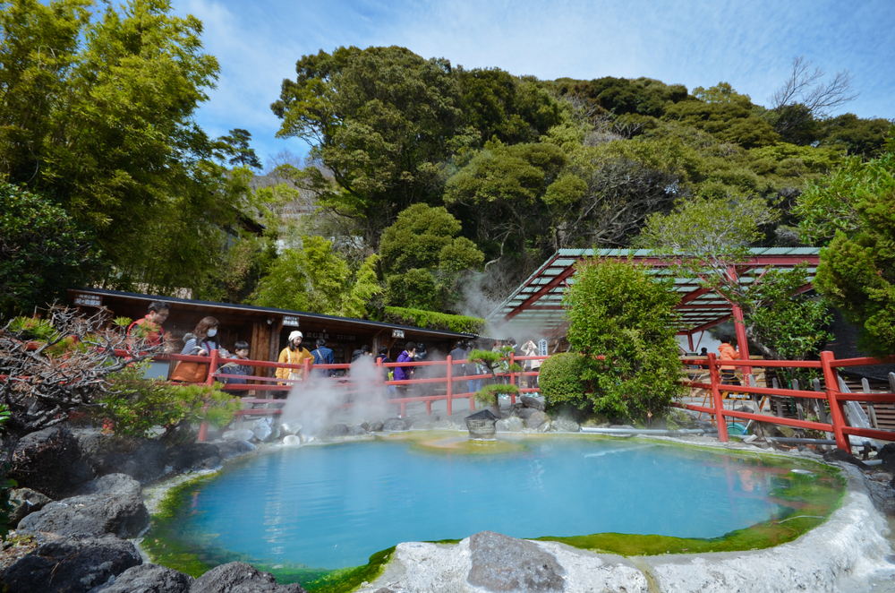 Beppu is the city of Kyushu that boasts the largest number and variety of hot springs in Japan, also the volume of thermal spring water dischrged is the largest. The temperature of some of them is close to 100 centi degrees. People did not dare to approach too closely, hence their nicknamed "hell". Jigoku Meguri (touring the hell) is popular tourist activity of the city, which provides you a ticket to enter seven hot spring sites, each with their particularities: Umi Jigoku, Chi no Ike Jigoku, Oniishibozu Jigoku, Oniyama Jigoku, Shiraike Jigoku, Kamado Jigoku, and Tatsumaki Jigoku.