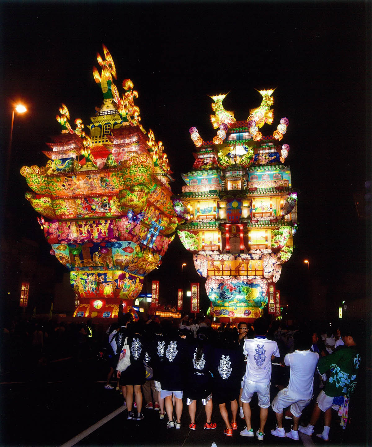 Disappeared for centuries, the Noshiro Tanabata festival, also known as "Tenku-no-Fuyajou", the festival of night-lit traveling castles, is today the pride of the friendly inhabitants of the northern regions of Tohoku. It is more precisely in the prefecture of Akita that is held this festival appearing among the 3 biggest summer festivals of Tohoku. Originally from the Tenpô era (1830-1844), he began by building a gigantic lantern more than 17 meters high representing the Nagoya Castle that was paraded in the streets of the city.