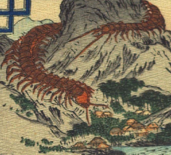 We can cross its miniature version in Japan (Mukade), this centipede insect known in hot and humid regions is not very popular with locals and tourists; his sting being very painful and his appearance repulsive. In Japanese folklore, it is the size of a mountain, spitting its venom on people in its path. Only great warriors like Hidesato Fujiwara were able to defeat him - the giant centipede (Hamamatsu - Kyoto)