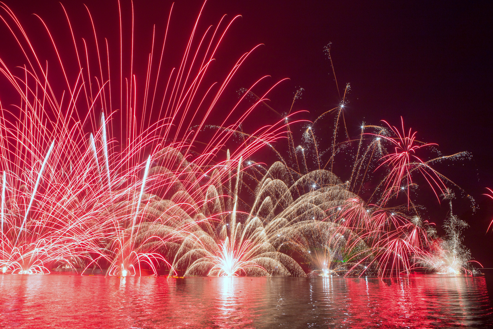 The fireworks on the lake