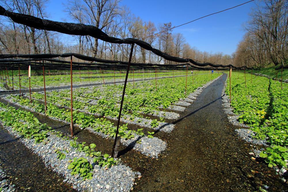 15 hectares in the total of wasabi plantations are visitable. It is possible to move freely through this vast terrain thanks to innumerable paths that wind through different fields. For more originality, why not cross the wasabi plantations by a boat? The fields are located along the Sai River, small boat trips are regularly offered. Also the Kurosawa movie, "Yume -Dreams-" was shooted at the site, since the scenery is breathtakingly beautiful.