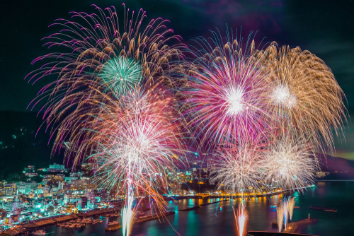 Also you cannot miss the Atami Marine Fireworks Festival, a historic firework festival which began in 1952. This Atami specialty is held more than 10 times throughout the year, not just in summer. Atami Bay, the venue, is a mortar-shaped terrain surrounded by mountains on three sides.The sound of fireworks raised in the sea reverberates, creating a large stadium-like sound effect. Fireworks in the night sky, reflected on the surface of the water is beyond the words.
