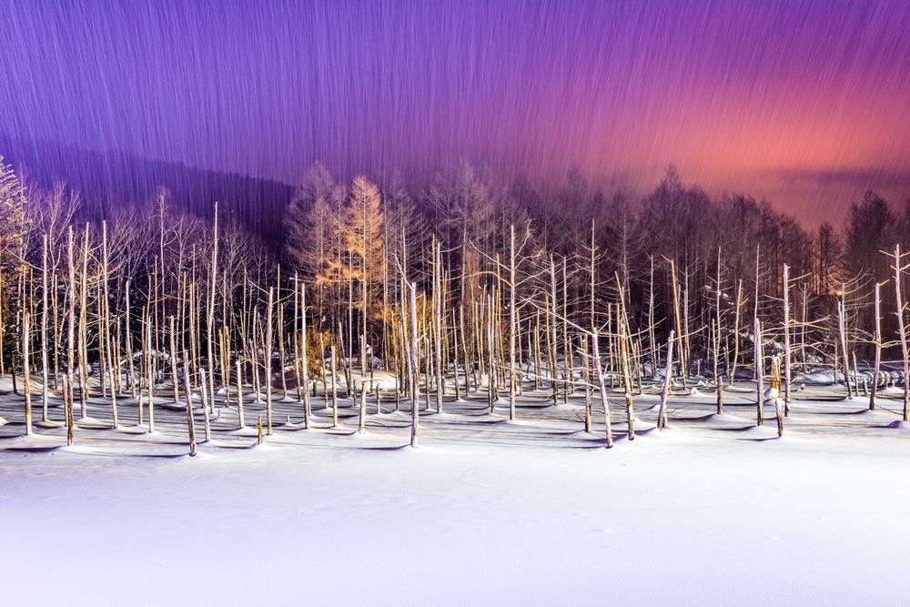 Enjoying Hokkaido in winter also includes wandering around the Biei blue pond and its ethereal landscape.