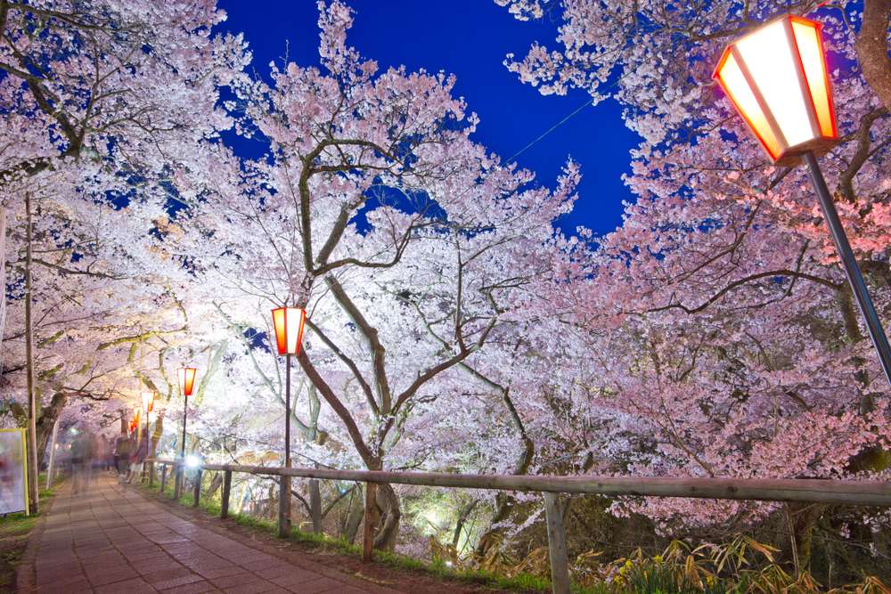 A sacred site for over 1,500 years, nestled in the prefecture of Nara, there are references to the beauty of Mount Yoshino since the 7th century. It is also known that several emperors and empress came regularly, and many poems and paintings refer to the place. And it is well deserved! The mountain is covered with sakura and its difference in height creates a shifted blossoming that allows the many visitors to enjoy the cherry blossoms for a longer period than the other places of Japan. No less than 30,000 cherry trees dot Yoshino with their beauty. In short, it is the perfect place for an ultimate Hanami!