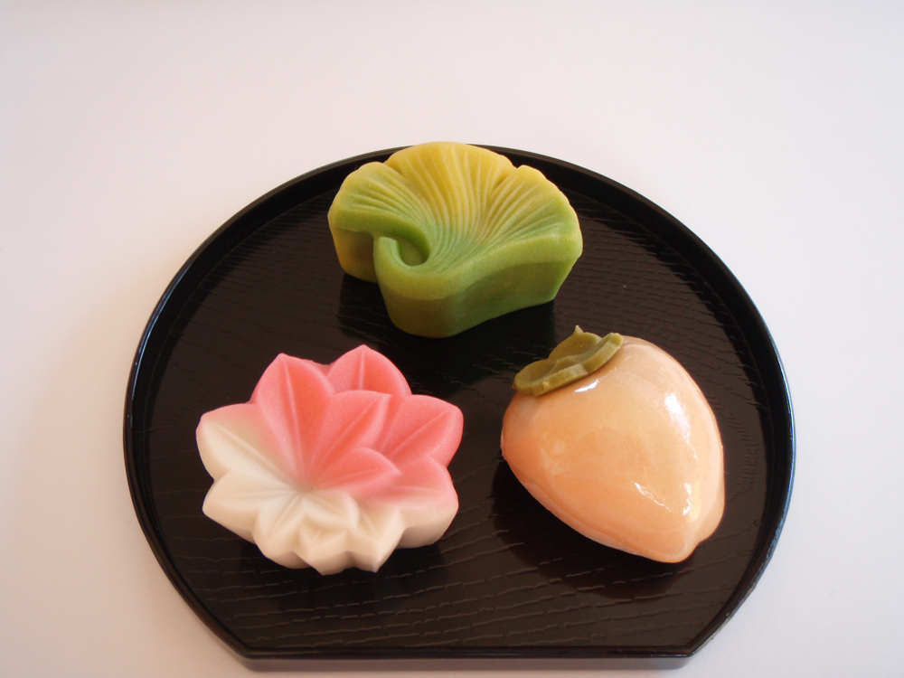 Wagashi (和菓子, Japanese sweets) that blend very well with green tea and used during tea ceremonies, take autumnal colors, shape or pattern of the maple leaf. The Japanese even go so far as to taste fried maple leaves, the "koyo tempura" (紅葉天ぷら).